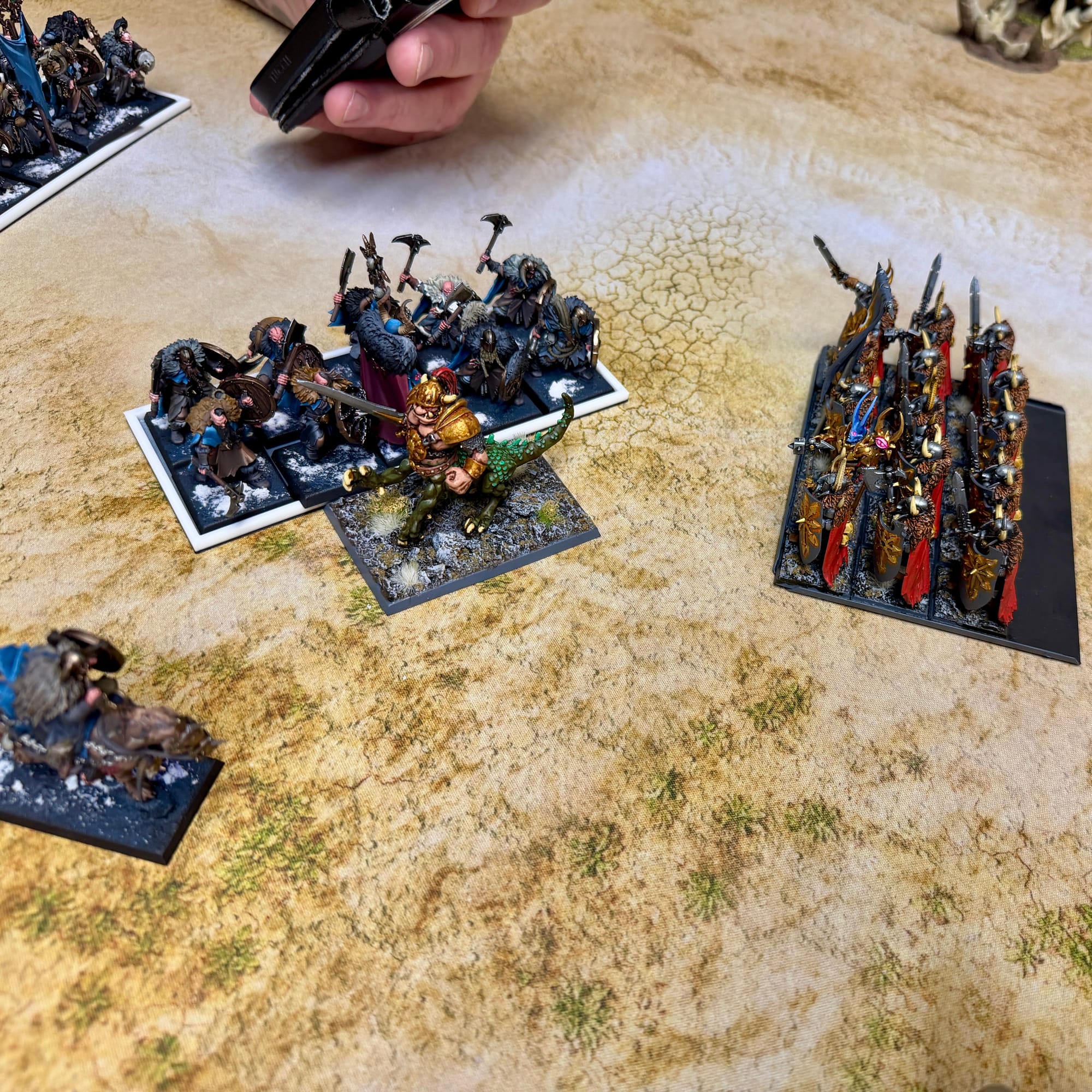 However, this overpursuit left the rival warband vulnerable. Grogg the dragon ogre waded into melee and was soon surrounded by marauders, luring them into a ripe position to be charged by the Brotherhood of the Black Sun